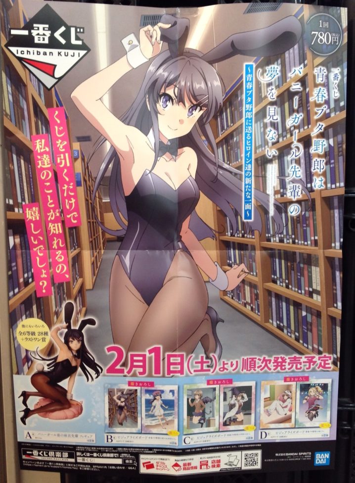 おもちゃコーナーより2月の一番くじ入荷予定です! 青春ブタ野郎はバニーガール先輩の夢を見ない 青春ブタ野郎に送るヒロイン達の新たな一面 バニーガール姿の麻衣先輩フィギュア、 描きおろしビジュアライズボードなどがラインナッ…