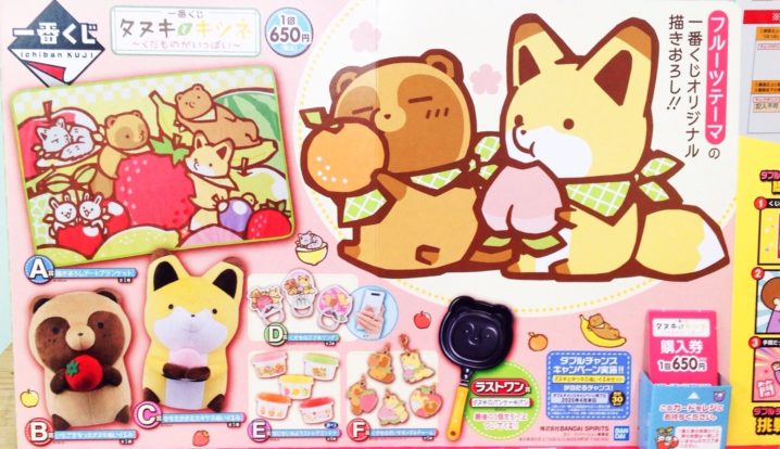 おもちゃコーナーより一番くじのご案内です°˖✧◝(⁰▿⁰)◜✧˖° フルーツテーマの一番くじオリジナル描きおろし!! 一番くじ タヌキとキツネ〜くだものがいっぱい〜 A賞 描きおろしアートブランケット B賞…