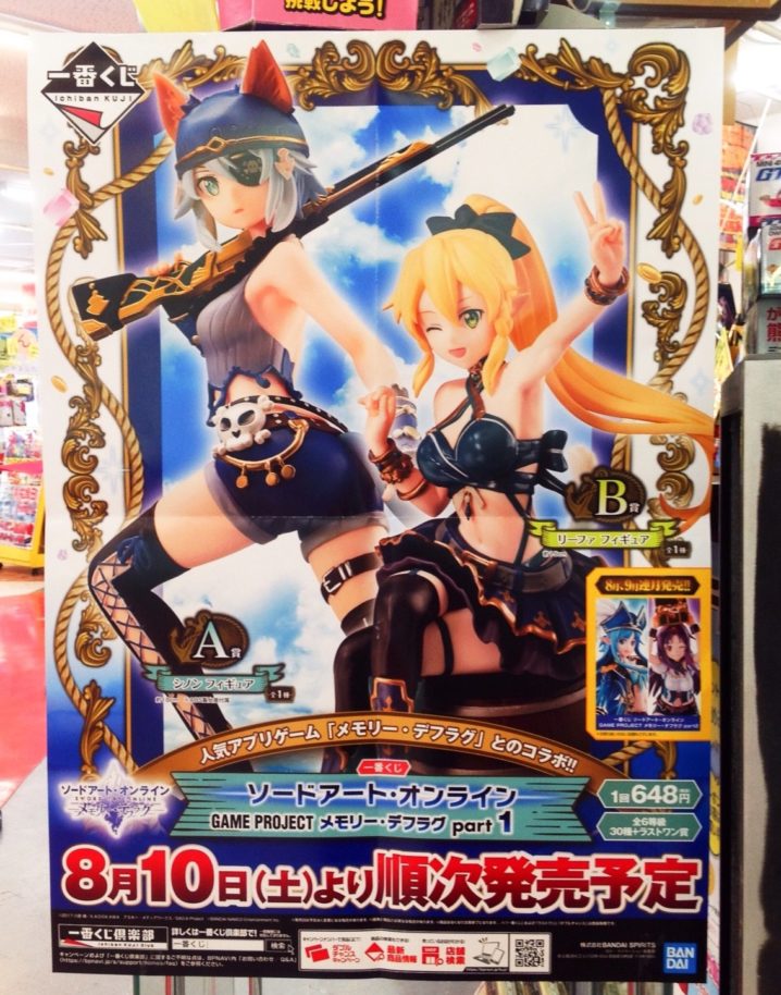 おもちゃコーナーより8月の一番くじ入荷予定です! 人気アプリゲーム『メモリー・デフラグ』とのコラボ!! ソードアート・オンライン GAME PROJECT メモリー・デフラグ part1 A賞シノンフィギュア&B…