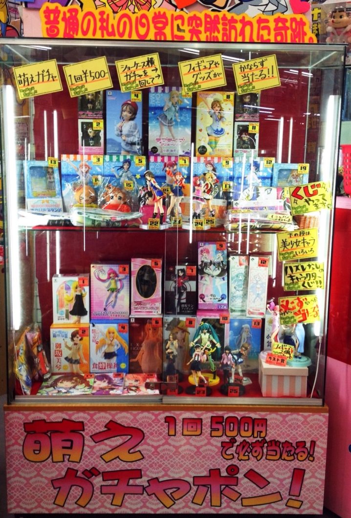 おもちゃコーナーより萌えガチャポン景品入れ替えました! ショーケース横のガチャを回して、出てきた番号札とショーケース内の同じ色・番号札の景品と交換致します! 1回500円(税込)でフィギュアやグッズが必ず1つ当たります!…