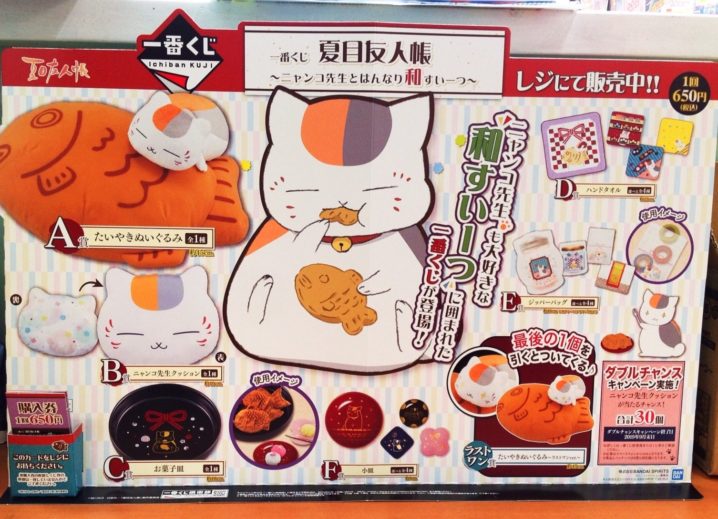 おもちゃコーナーより ニャンコ先生も大好きな”和すいーつ”に囲まれた一番くじが登場! 一番くじ 夏目友人帳 〜ニャンコ先生とはんなり和すいーつ〜 A賞 たいやきぬいぐるみ B賞 ニャンコ先生クッシ…