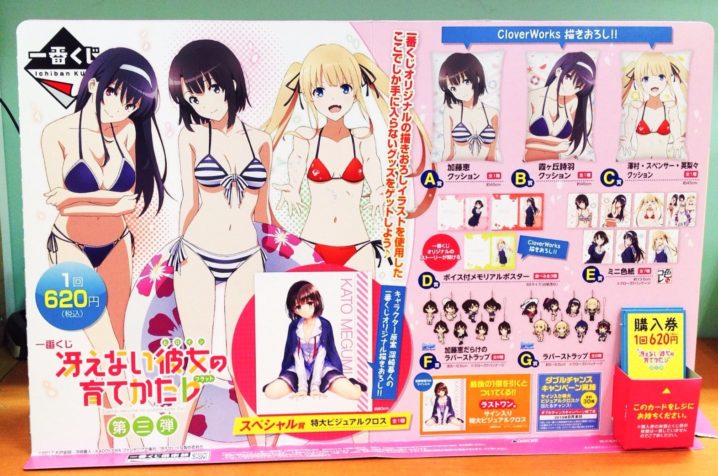 おもちゃコーナーより 一番くじ 冴えない彼女の育てかた♭ 第三弾 スペシャル賞 特大ビジュアルクロス キャラクター原案 深崎暮人氏の 一番くじオリジナル描きおろし!! A賞 加藤恵クッション B賞 霞ケ丘詩羽クッション …