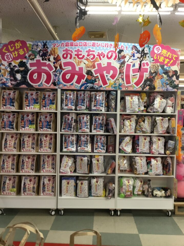 おもちゃコーナーより 只今おもちゃコーナーでは絶対お得なマンガ倉庫オリジナルお土産をご用意しております‼️ お買い上げ頂いたお客様にはくじびきも用意してます‼️ 是…