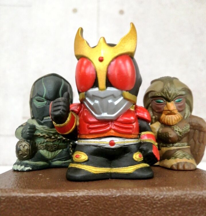 激旬の指人形👍 クウガマイティフォーム ゴ・ガメゴ・レ ゴ・ブウロ・グ お持ち込みいただきました‼️ 早速出しておきます🎵#仮面ライダークウガ #指人形#マンガ…