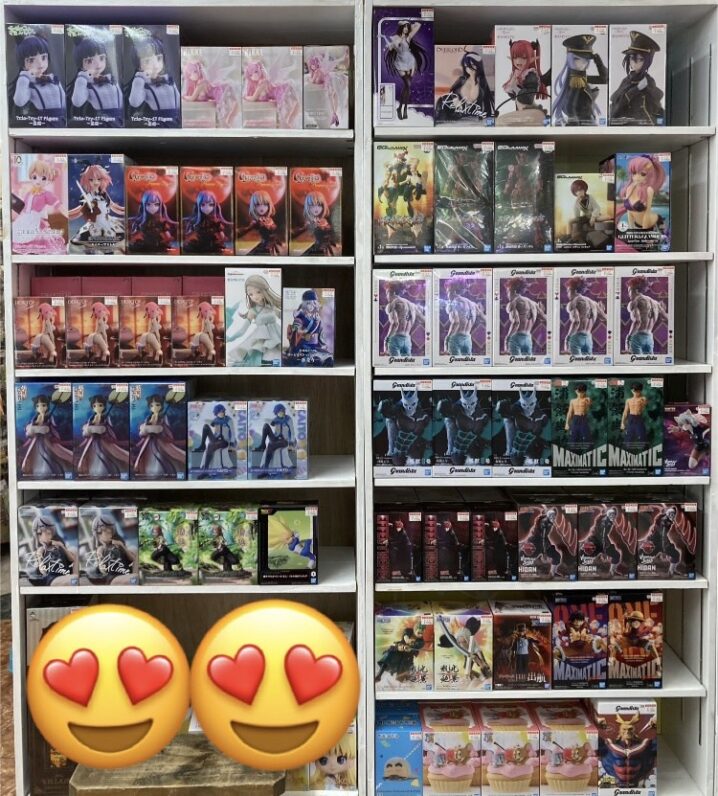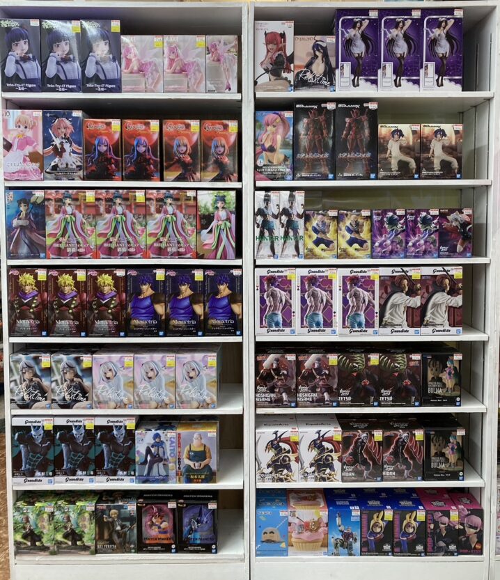 おもちゃコーナー 新作プライズフィギュア売場拡大してます♪ 新作フィギュアをお得にお手頃価格で展開しております🔥🔥🔥 人気の薬売りや猫猫、KAITOやヒソカもお手頃価格! …