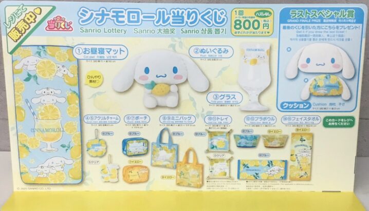 おもちゃコーナーより 7/5(土)朝10時発売‼️ ❤️シナモロール当りくじ❤️ 1回800円 爽やかなレモンモチーフのシナモロール当り…