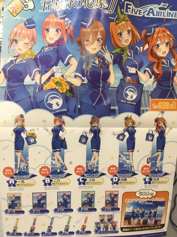 《おもちゃコーナーより最新情報のご案内です》 『きゃらっとくじ五等分の花嫁FiveAirline』 2月26日(土)朝9時より販売いたします♪