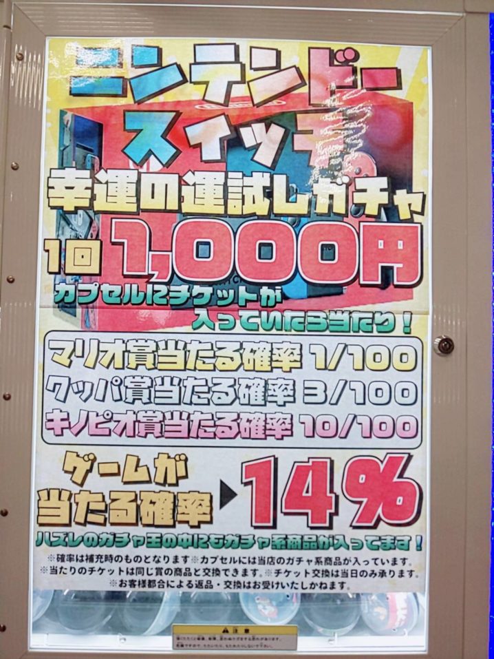 ニンテンドースイッチ千円ガチャ 景品、カプセル補充しました! 只今マリオ賞入っています!°˖✧◝(⁰▿⁰)◜✧˖° 是非挑戦してみてください🎵