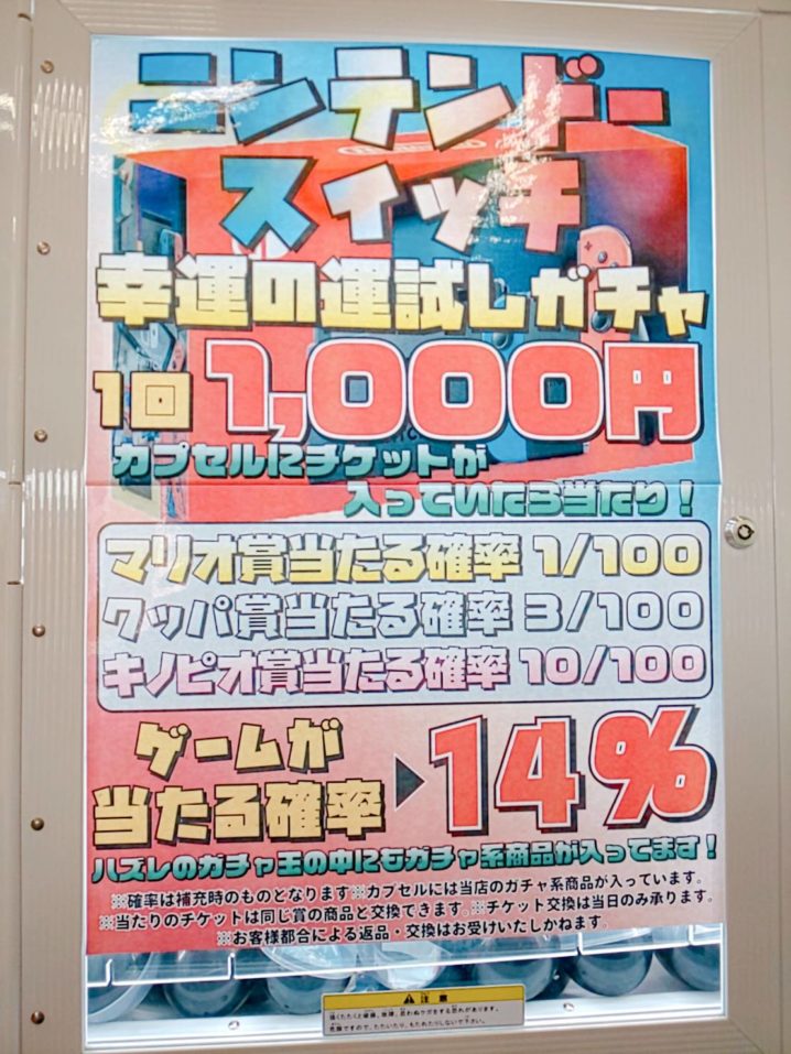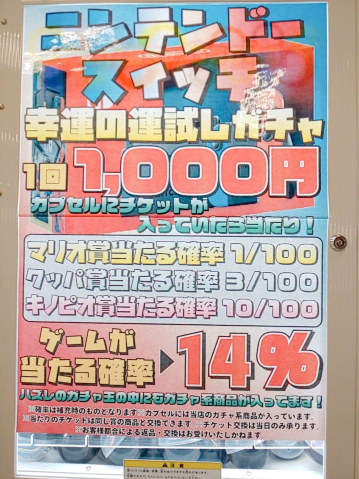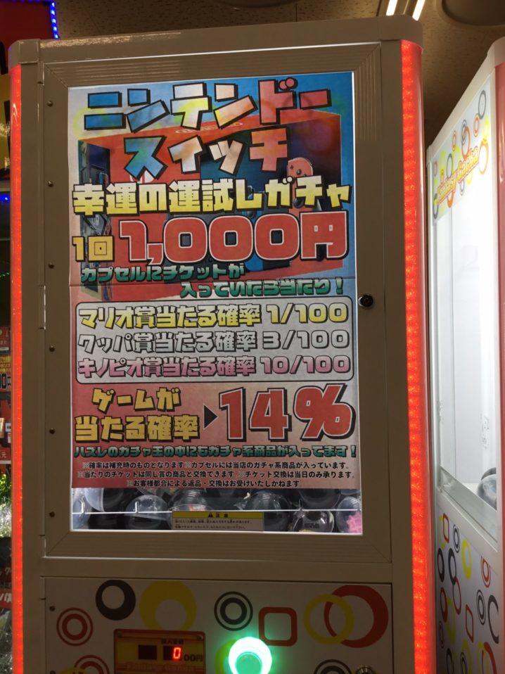 ニンテンドースイッチ1000円ガチャ パワーアップ中です! 1000円でニンテンドースイッチが当たるかも! 是非挑戦してみてください(*’ω’*)♪