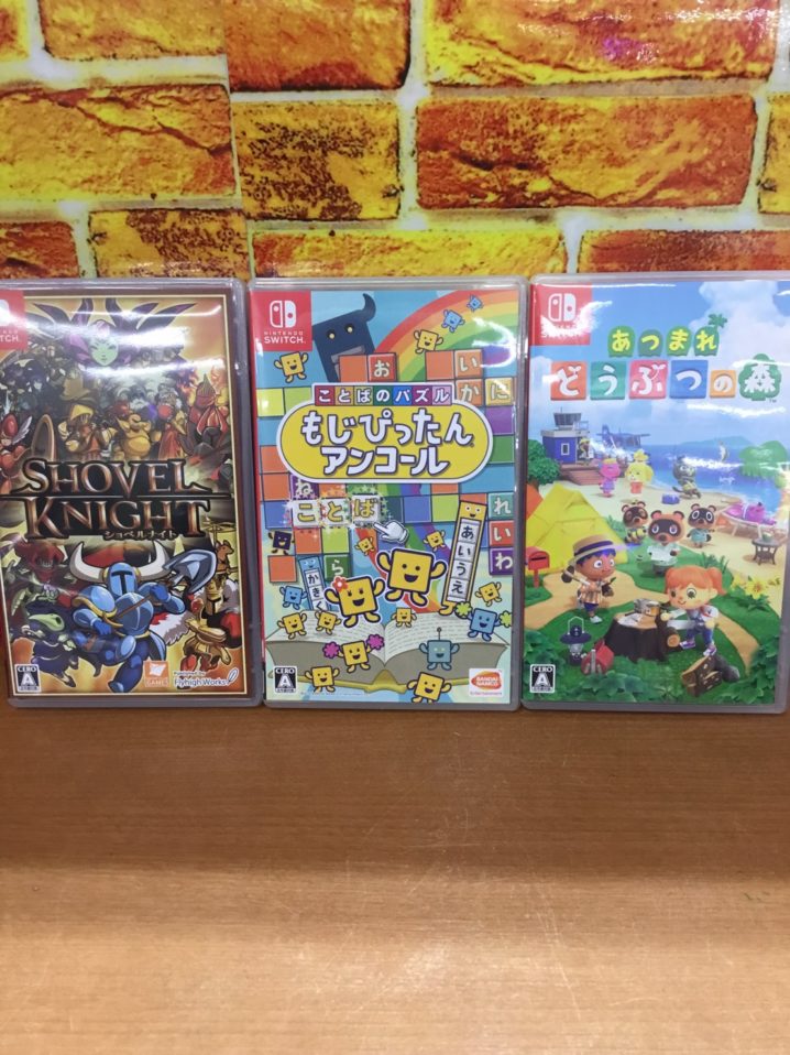 ゲームコーナーより Switchソフト あつまれ どうぶつの森 ことばのパズル もじぴったん アンコール ショベルナイト 買取ました! おもちいただきありがとうございます(*´ω`*) まだまだ買取大募集中…