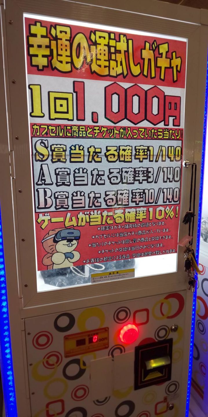 ゲーム1000円ガチャ当たり補充しました! 大好評稼働中です! 当店へお越しの際は是非、回しちゃってください((((oノ´3`)ノ