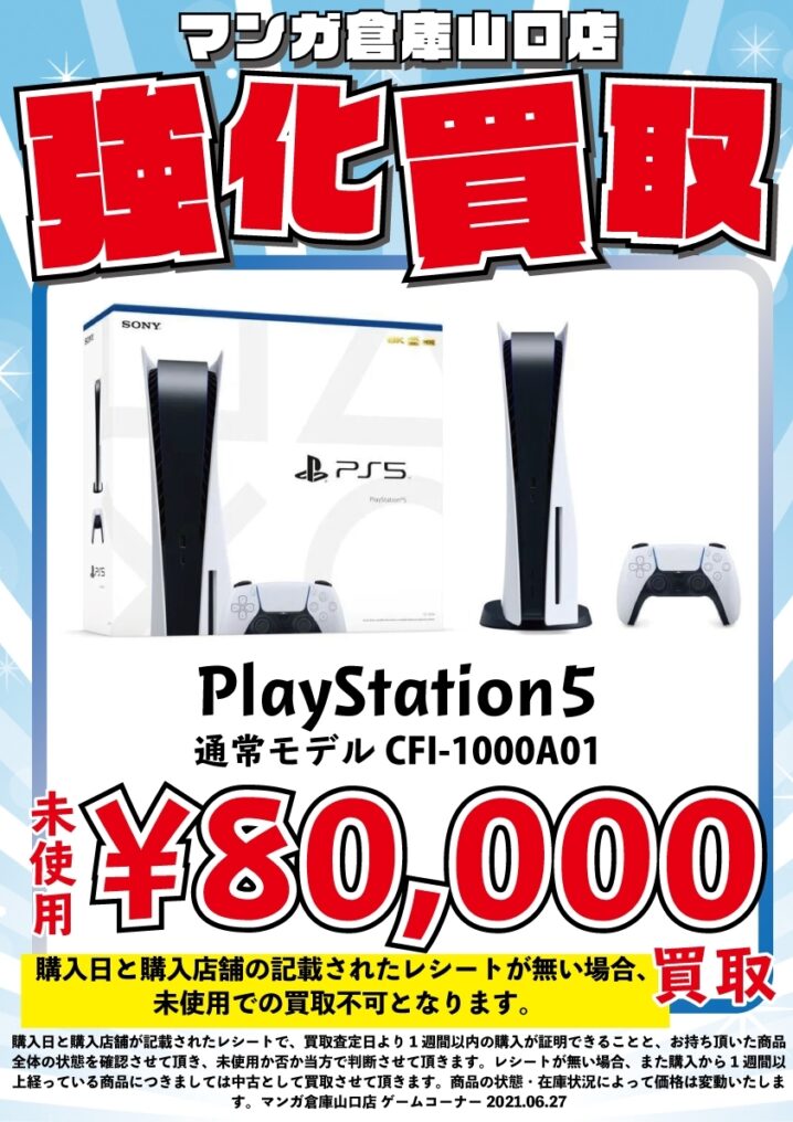 ただいまマンガ倉庫山口店では PS5本体を買取中! ★PlayStation5 通常モデル 未使用 80,000円 買取 ★PlayStation5 デジタル・エディション 未使用 60,000円 買取 PS5本体当店に…