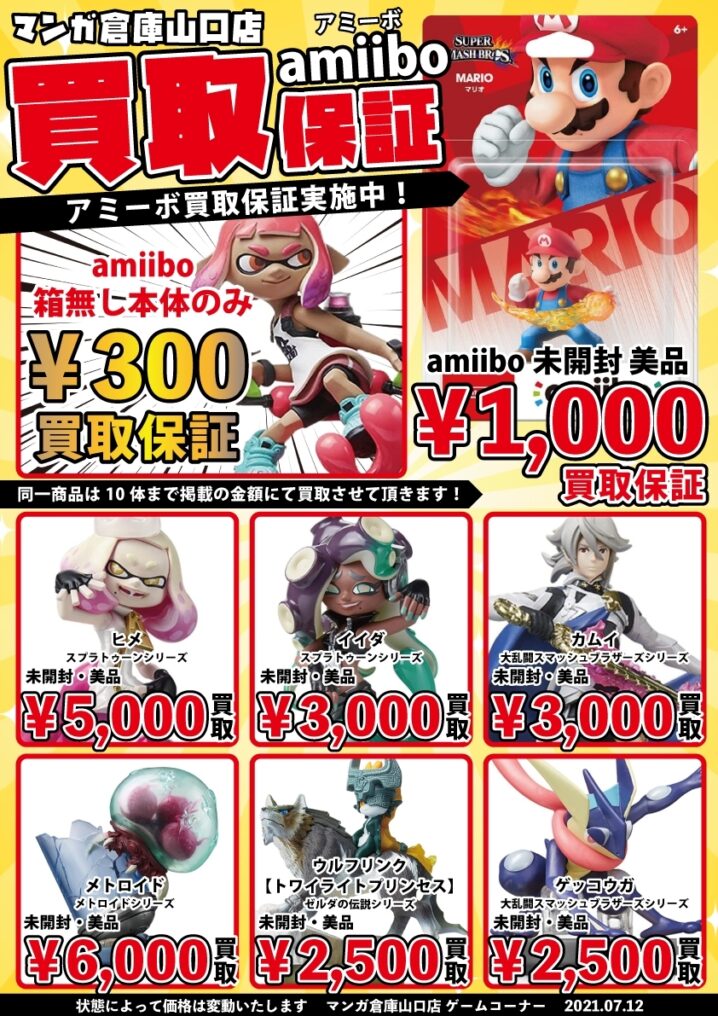 ただいまマンガ倉庫山口店では amiibo 買取強化中です! amiibo 未開封美品を 1,000円 買取保証★ amiibo 箱無し本体のみでも なんと 300円 買取保証! ほかにもスプラトゥーンシリーズや大乱闘ス…
