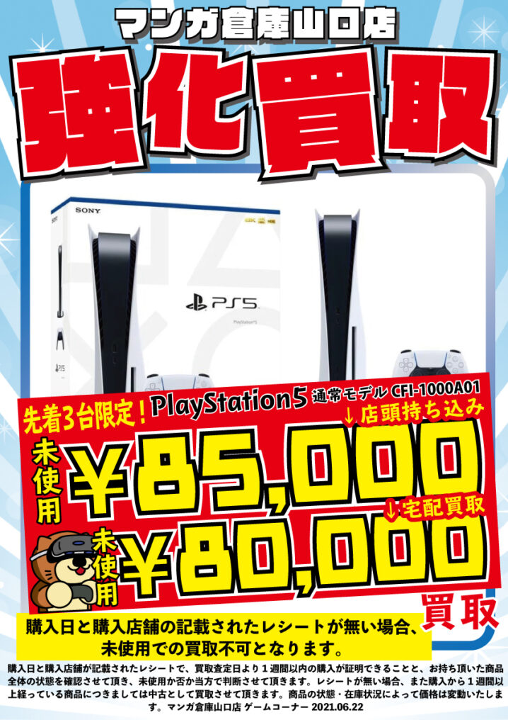 ただいまマンガ倉庫山口店では ▼店頭持ち込み PlayStation5 通常モデル CFI-1000A01 未使用:85000円買取 PlayStation5 デジタルエディション CFI-1000B01 未使用:650…