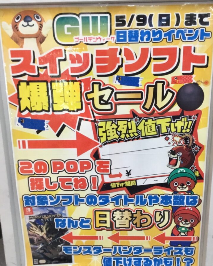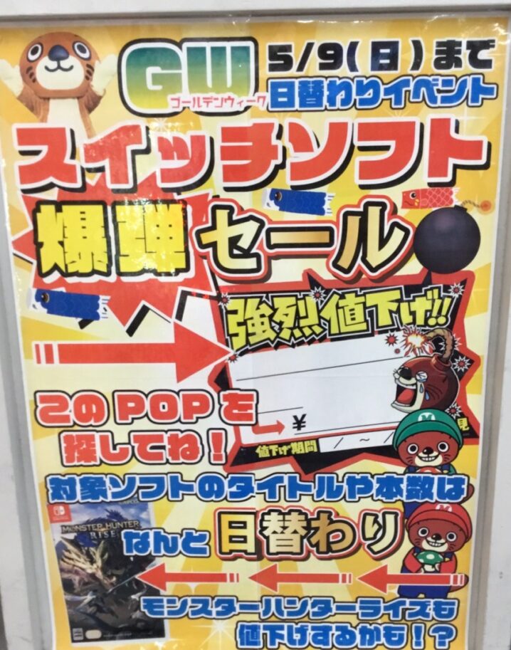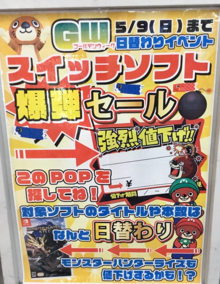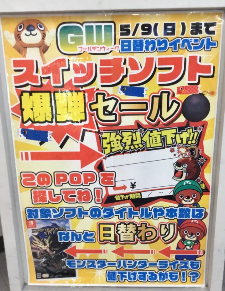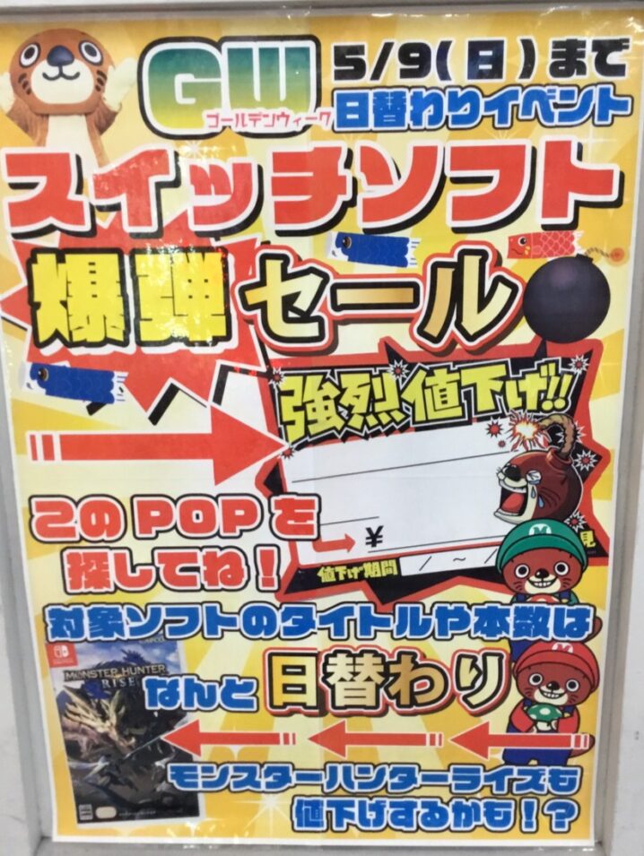 【5月9日まで】ゴールデンウィーク日替わりイベント《スイッチソフト爆弾セール》開催中です!