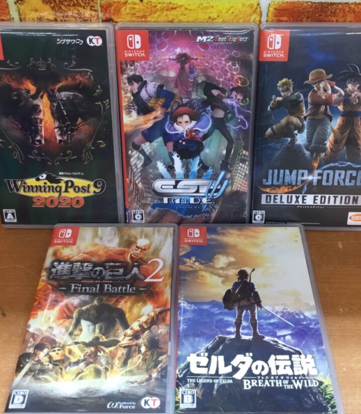 ゲームコーナーより Switchソフト ウイニングポスト9 2020 ゼルダの伝説 ブレスオブザワイルド モンスターハンターライズ ほかタイトル PS4ソフト 進撃の巨人2 電車でGO!!はしろう山手線 モンスターハンタ…
