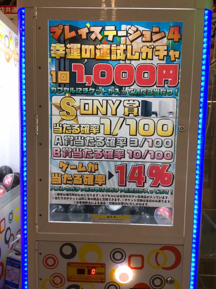 プレイステーション4幸運の運試しガチャ 好評稼動中です!🌟 1回1000円でプレイステーション4を ゲットするチャンス! ニンテンドースイッチ幸運の運試しガチャ 好評稼動中!🌟 1回100…