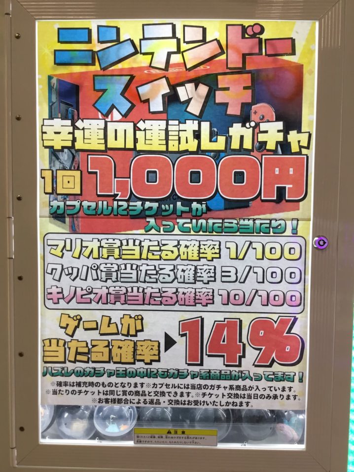 ゲーム1000円ガチャ マリオ賞出ましたので景品&カプセル補充しました! 皆様のチャレンジお待ちしております!