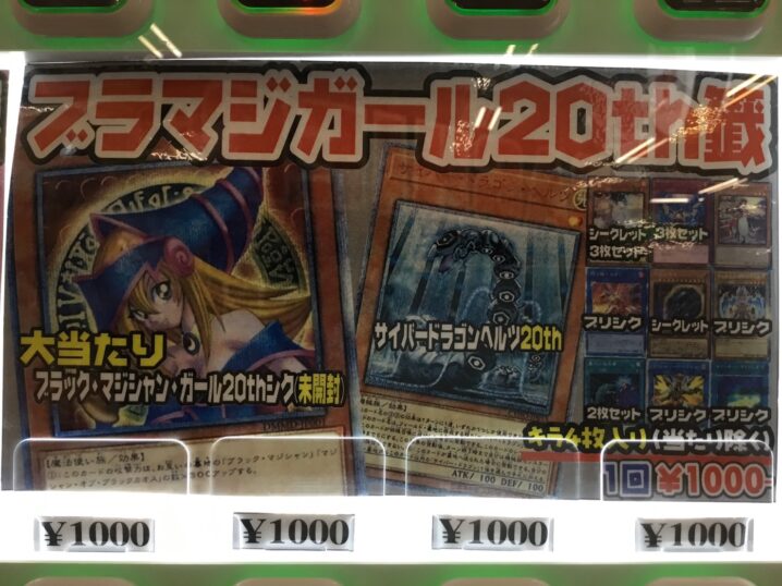 ★カードコーナーよりお知らせ★ 遊戯王 自動販売機企画 「ブラマジガール20th籤」作りました! 大当たりは「ブラック・マジシャン・ガール 20thシークレット(未開封)」です! 他にも「サイバー・ドラゴン…