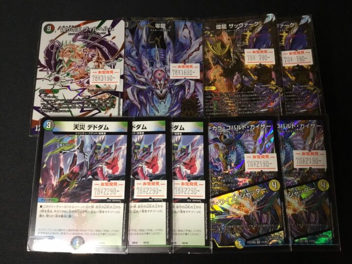 カードコーナーより デュエルマスターズ、ポケモンカードキズありコーナー入荷しました! 天災 デドダム メヂカラ・コバルト・カイザー 偽りの王 ヴィルヘルム 零龍 煌龍 サッヴァーク イーブイGX/HR ポケモンごっこ/S…