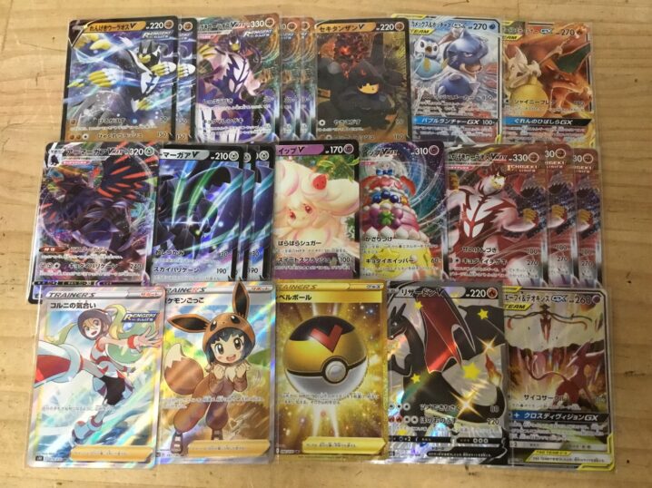 カードコーナーより ポケモンカード コルニの気合い/SR ポケモンごっこ/SR レベルボール/UR リザードンV/SSR エーフィ&デオキシスGX/SR など 買い取りました! ポケモンカード SR・HR・UR(レギュC…