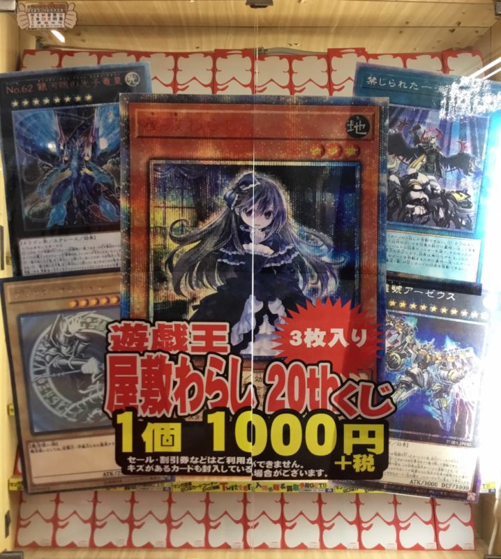 カードコーナーより 遊戯王「屋敷わらし 20thくじ」 デュエルマスターズ「レッドギラゾーンくじ」 作りました! 大当たりは、遊戯王は「屋敷わらし20thシークレット」 デュエルマスターズは「轟く革命 レッ…