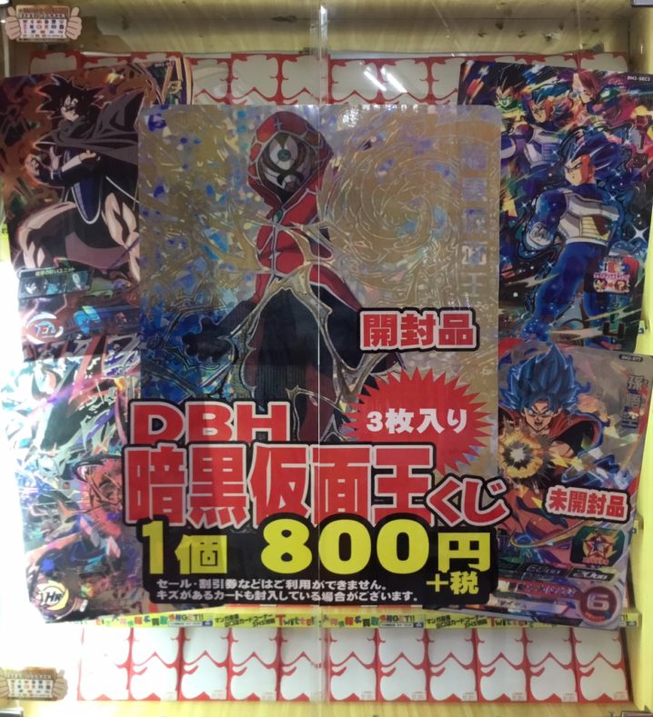 カードコーナーより ドラゴンボールヒーローズ「暗黒仮面王くじ」作りました! 大当たりは「暗黒仮面王(パラレル)SH4-SEC2」となっております! 是非チャレンジしてみて下さい!
