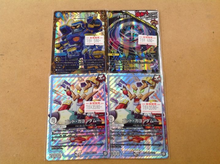 カードコーナー デュエルマスターズより ゴッド・ガヨンダム ガチャンコ ガチロボ ♪仰ぎ見よ閃光の奇跡/プロモ ドラゴンボールヒーローズより トランクス:青年期/H3-SEC ゴジータ:UM/UM12-SEC4 ガンバラ…