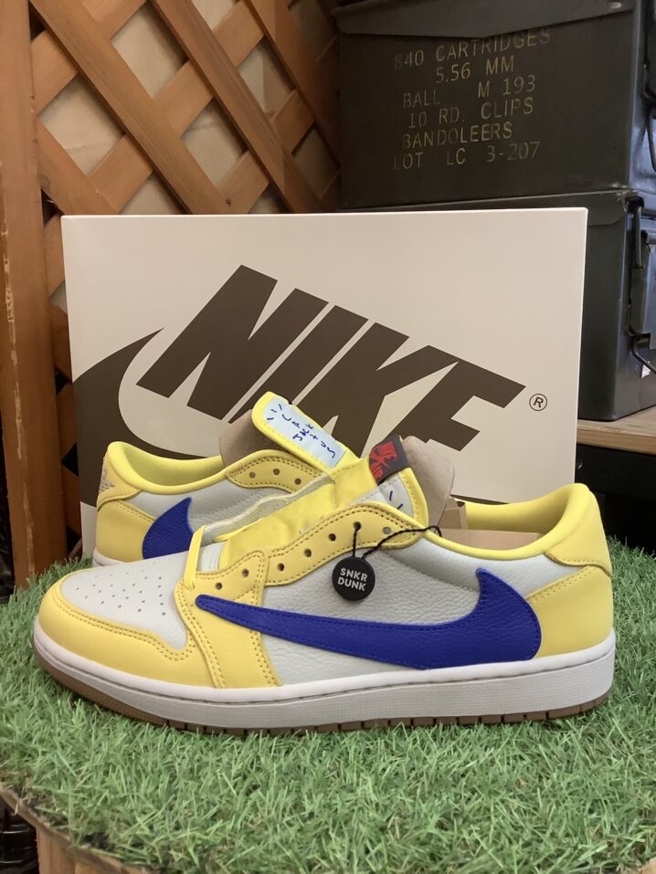 TravisScott×NIKE AirJordan1RetroLowOG 入荷しました! イエローとブルーの映えるカラーリング💛 夏に履きたい一足! 買取もお待ちしております🧞 …