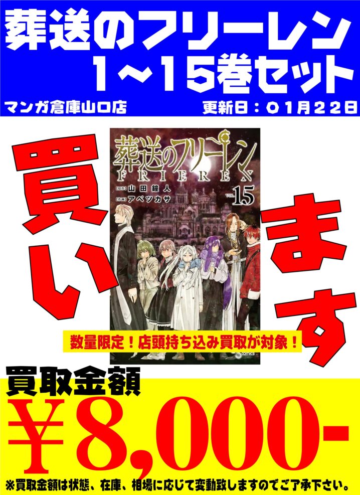 セットコミック 数量限定で強化買取中! 葬送のフリーレン 1~15巻セット/8,000円 HUNTER×HUNTER 1~38巻セット/9,000円 2026/1/22時点での店頭美品買取金額となります。 相場変動・在庫…