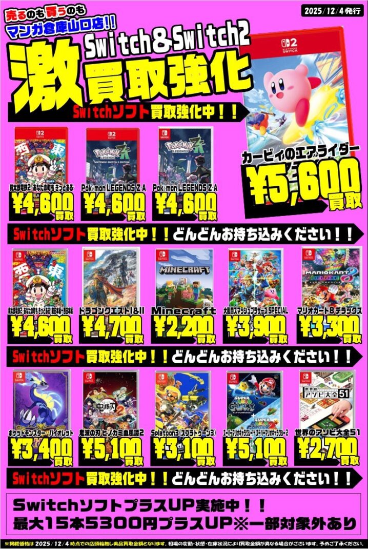 2020.02.24 告知 manager ■ゲームソフト買取告知■ ※2025年12月4日更新 ※美品・完品の金額となります。状態により金額が変動する場合がございます。また在庫状況により金額が変動する場合がございますのであらかじめご了承ください。 続きを読む