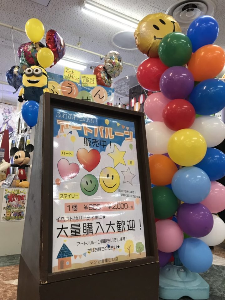 マンガ倉庫山口店ではアートバルーンの販売はじめました°˖✧◝(⁰▿⁰)◜✧˖° おひとつ800円より販売中です★ パーティやイベント用に大量購入も大歓迎です! またアートバルーンの買取も行っております! 是非ご利用くださ…