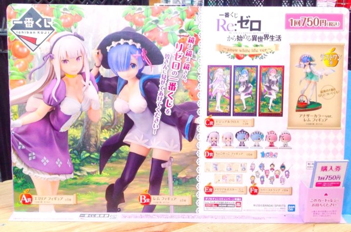 おもちゃコーナーより一番くじのご案内です°˖✧◝(⁰▿⁰)◜✧˖° 鏡よ鏡よ鏡さん、リゼロの一番くじを皆さんに見せてあげてください! Re:ゼロから始める異世界生活〜snow white life ver….