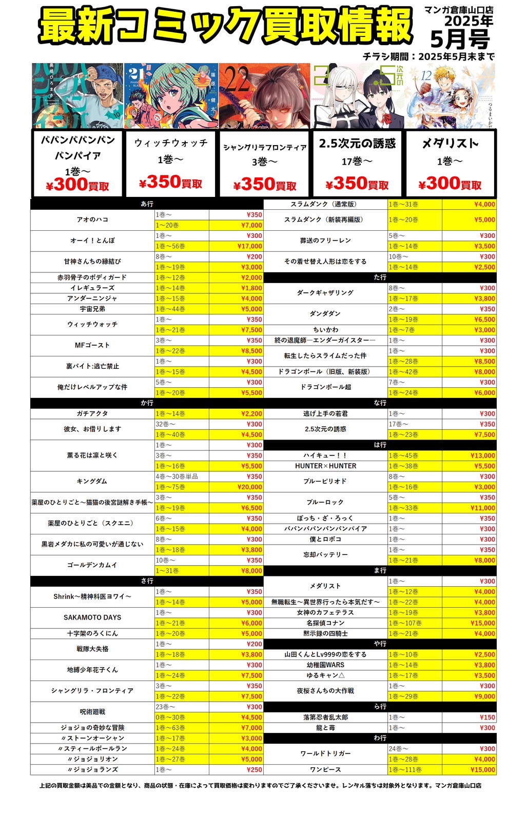 2025.05.03 こんなの買い取りました takalab_3 ■コミック買取させて頂きました!《薬屋のひとりごと など》■ X.com Facebook はてブ LINE Pocket 本コーナーからのお知らせ! コミック買取させて頂きました! ・薬屋のひとりごと ・夜桜さんちの大作戦 ・アオのハコ どれも人気作品です、お持ち込み頂きありがとうございます! 当店では人気作品を全力買取中! 告知に無いタイトルもしっかり買取させて頂きます 読み終わったコミックは是非当店へお売りください! *********************************** その他買取情報はこちら! その他イベント情報はこちら! シェア! X.com Facebook はてブ LINE Pocket feedly コメントを残す コメントをキャンセルメールアドレスが公開されることはありません。 ※ が付いている欄は必須項目ですコメント ※ 名前 ※ メール ※ サイト 新しいコメントをメールで通知 新しい投稿をメールで受け取る Δ このサイトはスパムを低減するために Akismet を使っています。コメントデータの処理方法の詳細はこちらをご覧ください。