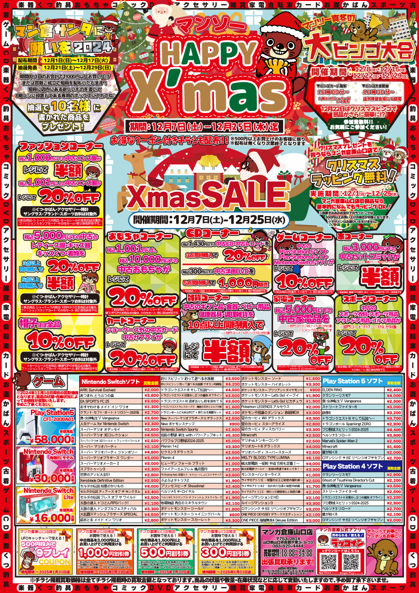本日公開のチラシをチェックして、是非マンガ倉庫山口店🎄HAPPY Xmas🎄にご参加下さいませ🦌🛷
