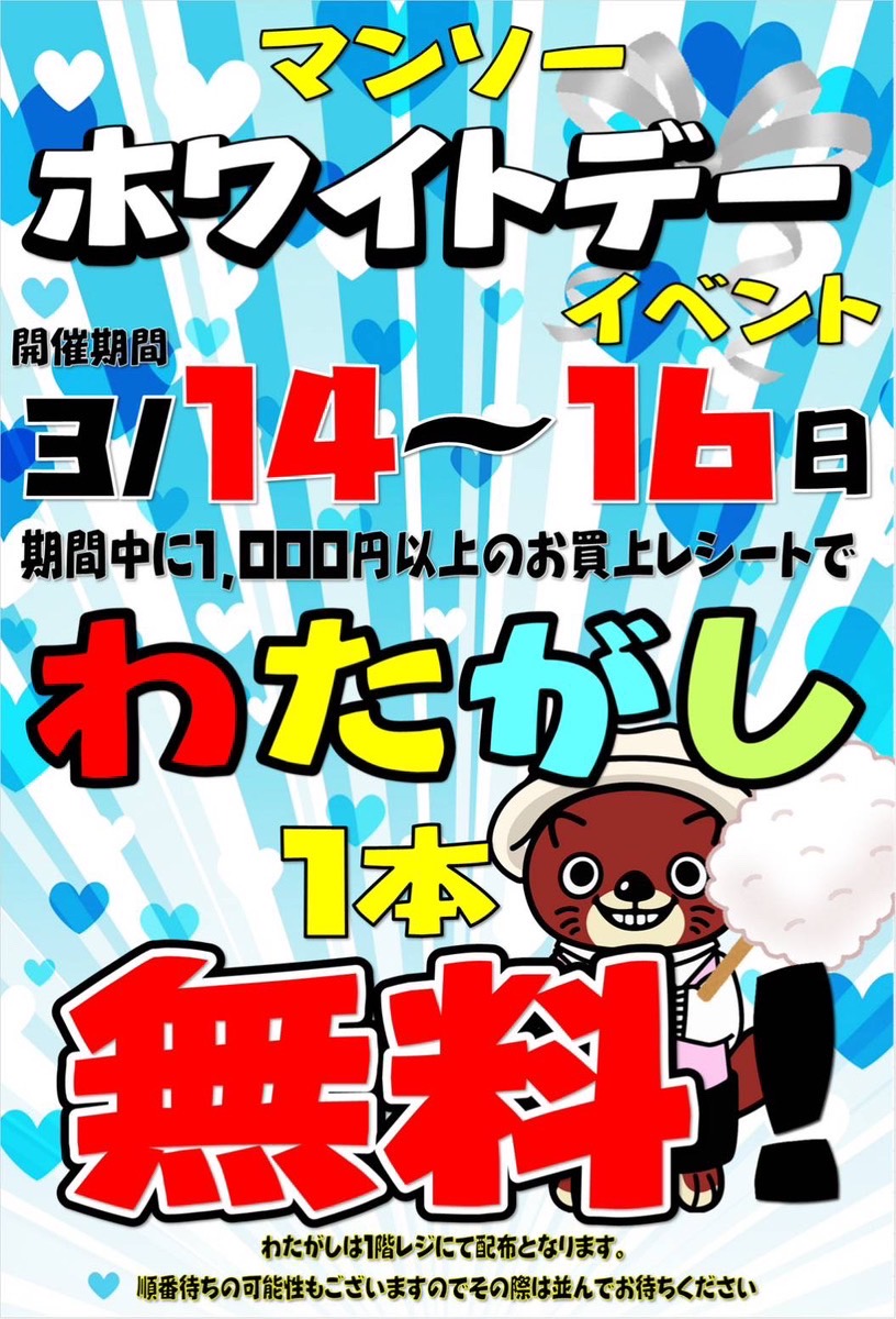 期間中に当店で税込み1,000円以上お買い上げ頂いたレシートをご提示いただくと、作りたてのわたがしを1本無料でプレゼント!