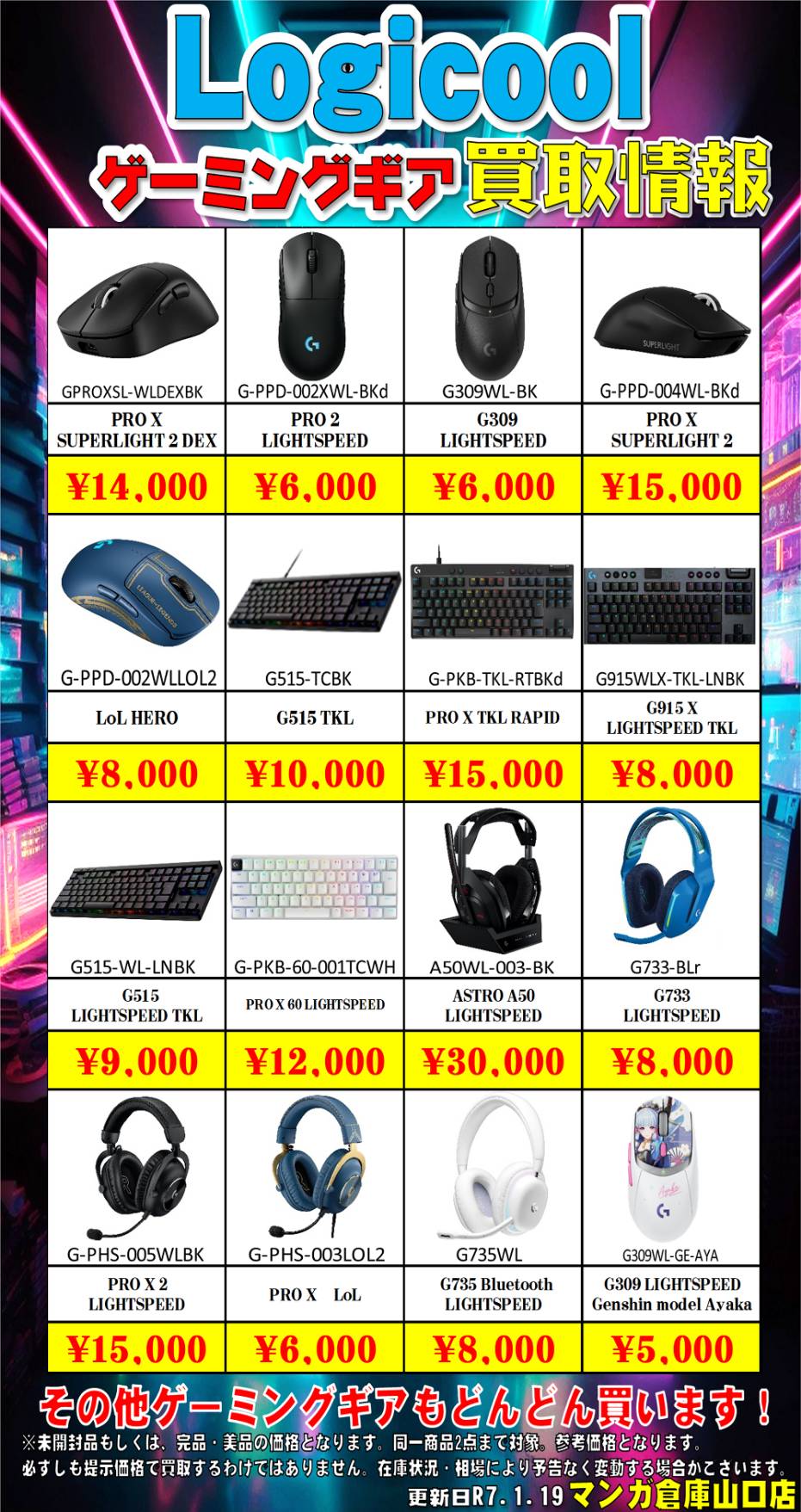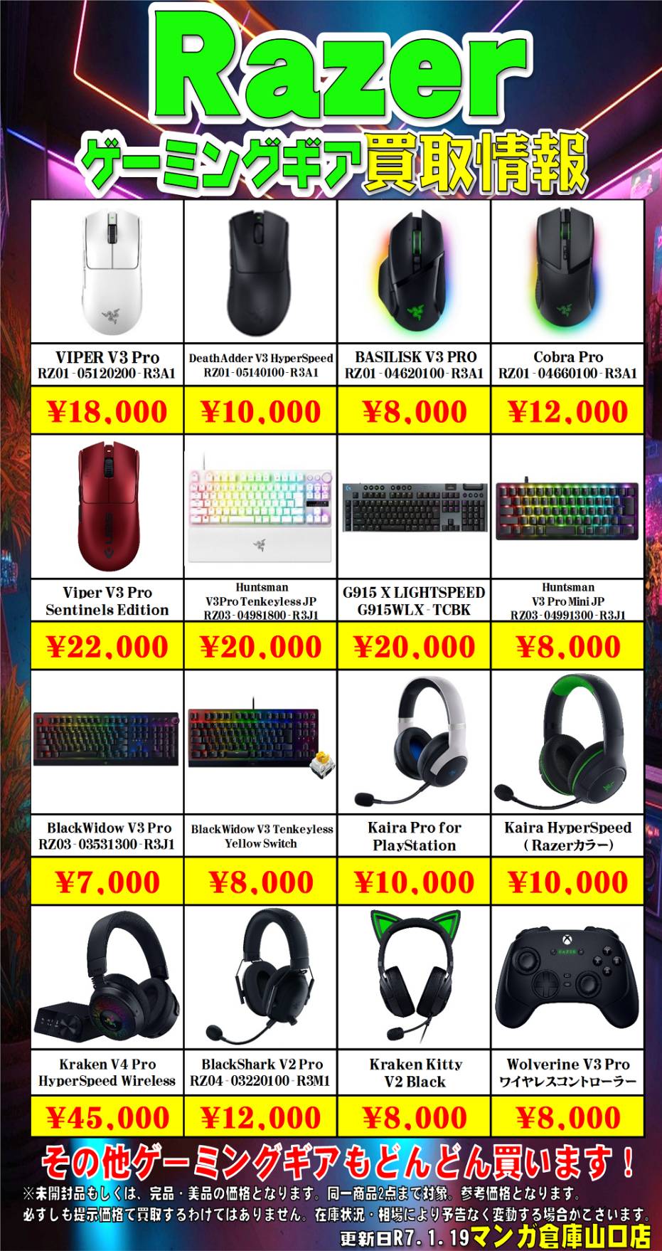2025.03.19 こんなの買い取りました takalab_1 ✨ゲーミングコーナーより買取のお知らせ✨ X.com Facebook はてブ LINE Pocket ✨ゲーミングコーナーより買取のお知らせ✨ 買取・新入荷情報 ◆Razer Deathadder Essential 未開封品 買い取らせていただきました✨✌🏻 ただいまマンガ倉庫山口店では、ゲーミングデバイスの買取を強化しています。 Logicool、Razer、ELECOM ゲーミングマウスやキーボード、モニター等どんどん集めています! 在庫が足りません! 箱無しでも大歓迎です! 是非マンガ倉庫山口店へお持ちください✨ シェア! X.com Facebook はてブ LINE Pocket feedly コメントを残す コメントをキャンセルメールアドレスが公開されることはありません。 ※ が付いている欄は必須項目ですコメント ※ 名前 ※ メール ※ サイト 新しいコメントをメールで通知 新しい投稿をメールで受け取る Δ このサイトはスパムを低減するために Akismet を使っています。コメントデータの処理方法の詳細はこちらをご覧ください。