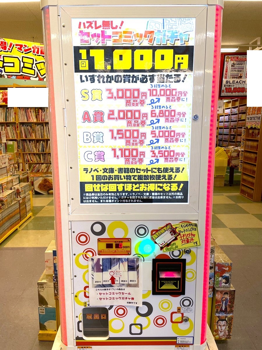1回1000円で、セットコミックのお買い上げ時に使える割引券が必ずゲットできます!