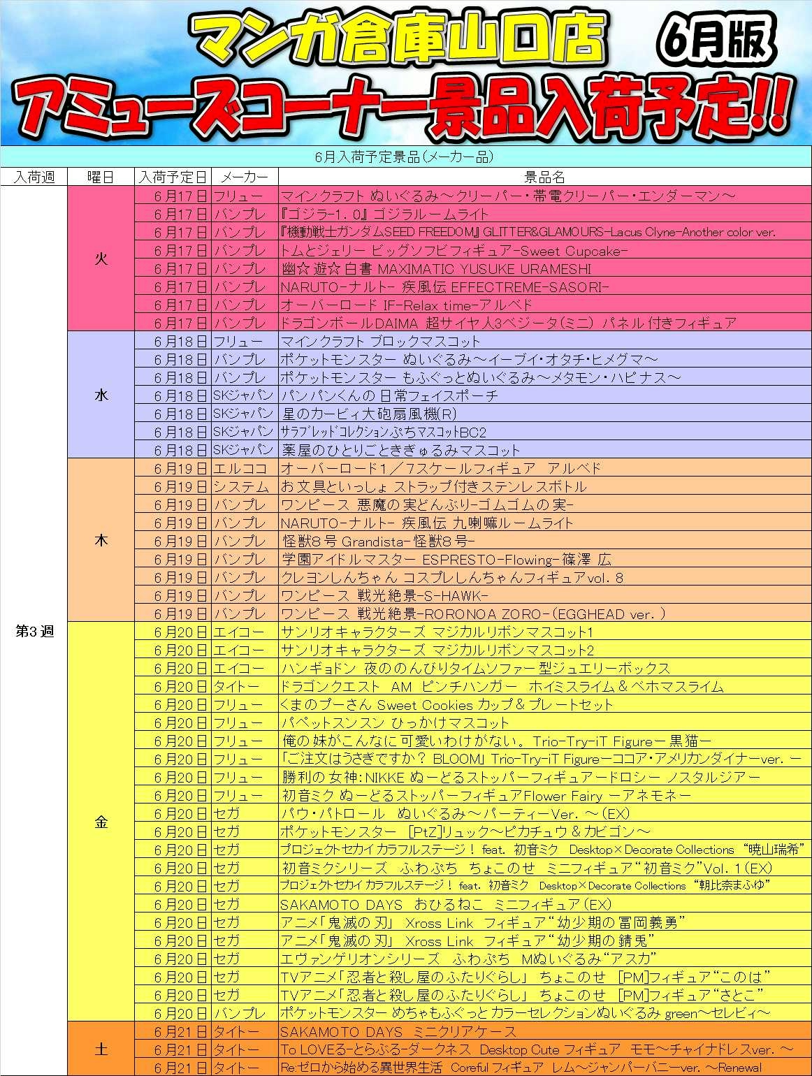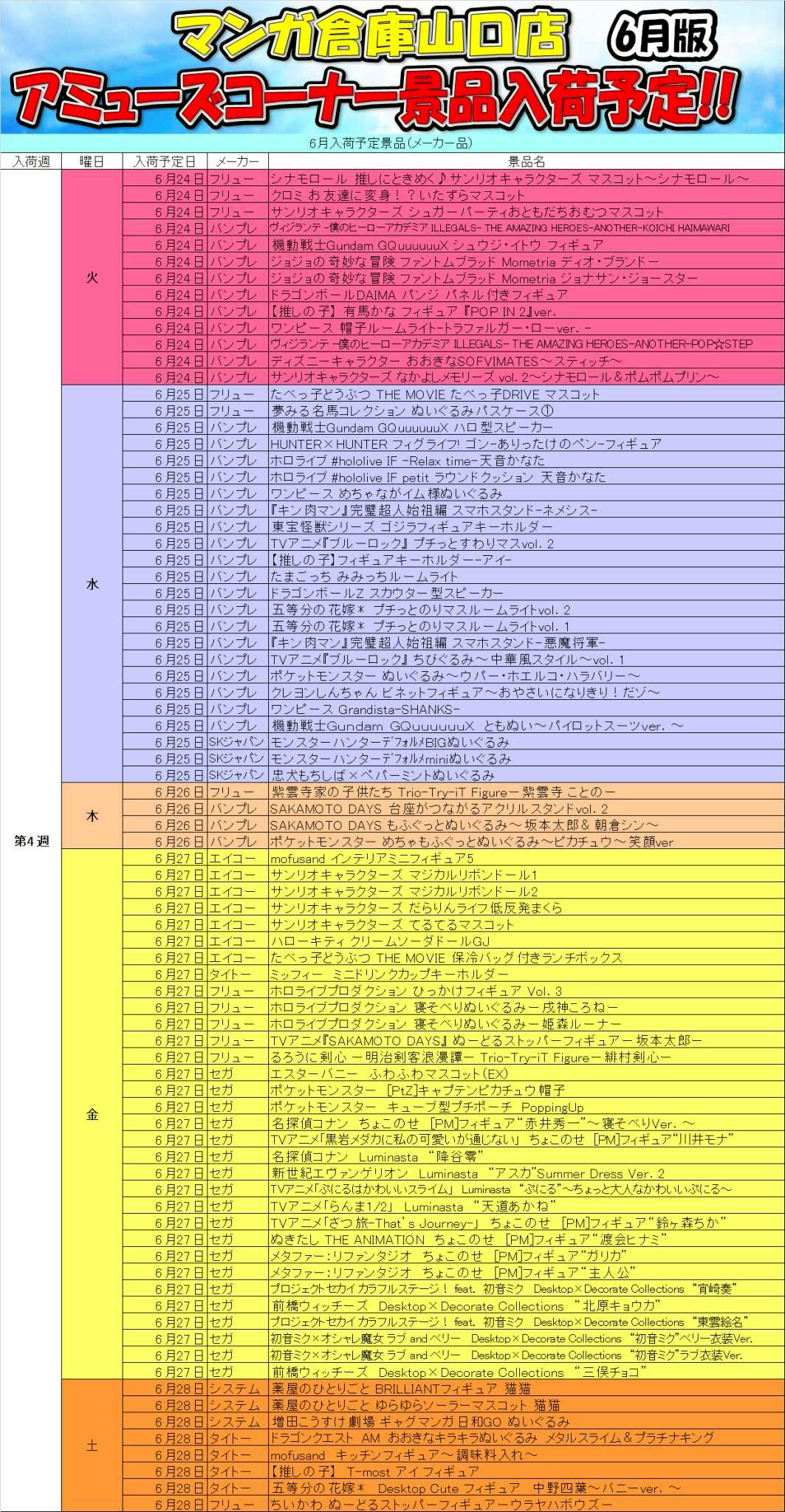 2025.05.30 アミューズ takalab_4 ★1Fアミューズメントコーナーより6月の入荷予定景品★ X.com Facebook はてブ LINE Pocket ★1Fアミューズメントコーナーより6月の入荷予定景品★ シェア! X.com Facebook はてブ LINE Pocket feedly コメントを残す コメントをキャンセルメールアドレスが公開されることはありません。 ※ が付いている欄は必須項目ですコメント ※ 名前 ※ メール ※ サイト 新しいコメントをメールで通知 新しい投稿をメールで受け取る Δ このサイトはスパムを低減するために Akismet を使っています。コメントデータの処理方法の詳細はこちらをご覧ください。