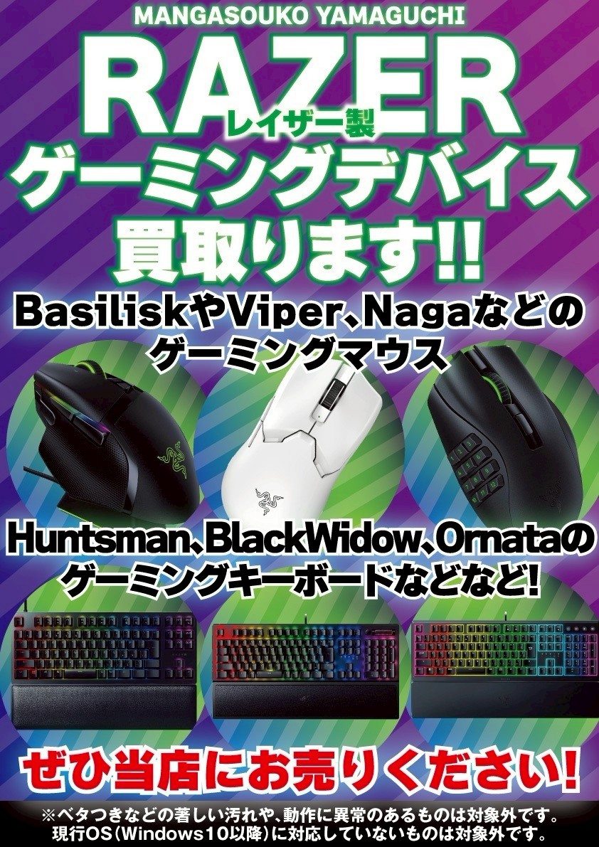 2025.06.09 買取情報 takalab_3 ただいまマンガ倉庫山口店では、ゲーミングデバイスの買取を強化しています。 X.com Facebook はてブ LINE Pocket ただいまマンガ倉庫山口店では、ゲーミングデバイスの買取を強化しています。 Logicool、Razer、ELECOM ゲーミングマウスやキーボード、モニター等どんどん集めています! お売りいただけるゲーミングデバイスは是非マンガ倉庫山口店へお持ちください! 2025/6/9 現在の価格となっております。 相場の変動や在庫状況により告知なく価格が変更となる場合がございますのでご了承ください。 ********************************** その他買取情報はこちら! その他イベント情報はこちら! シェア! X.com Facebook はてブ LINE Pocket feedly コメントを残す コメントをキャンセルメールアドレスが公開されることはありません。 ※ が付いている欄は必須項目ですコメント ※ 名前 ※ メール ※ サイト 新しいコメントをメールで通知 新しい投稿をメールで受け取る Δ このサイトはスパムを低減するために Akismet を使っています。コメントデータの処理方法の詳細はこちらをご覧ください。