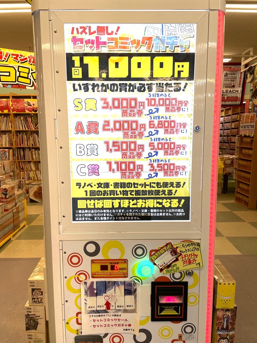 セットコミックをお買い上げ時に使える割引券が必ず当たる「セットコミックガチャ」!