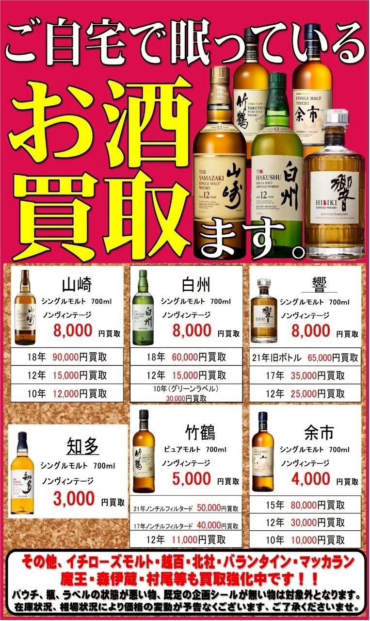 2025.07.04 こんなの買い取りました takalab_1 サントリーウイスキー響 100周年記念ボトル木箱付き 買い取りました! X.com Facebook はてブ LINE Pocket お酒コーナーより、 サントリーウイスキー響 100周年記念ボトル木箱付き 買い取りました! マンガ倉庫山口店では、お酒の買取を強化中です! お家に眠っているウイスキー、ブランデー、焼酎などありましたら是非当店にお売り下さい! シェア! X.com Facebook はてブ LINE Pocket feedly コメントを残す コメントをキャンセルメールアドレスが公開されることはありません。 ※ が付いている欄は必須項目ですコメント ※ 名前 ※ メール ※ サイト 新しいコメントをメールで通知 新しい投稿をメールで受け取る Δ このサイトはスパムを低減するために Akismet を使っています。コメントデータの処理方法の詳細はこちらをご覧ください。