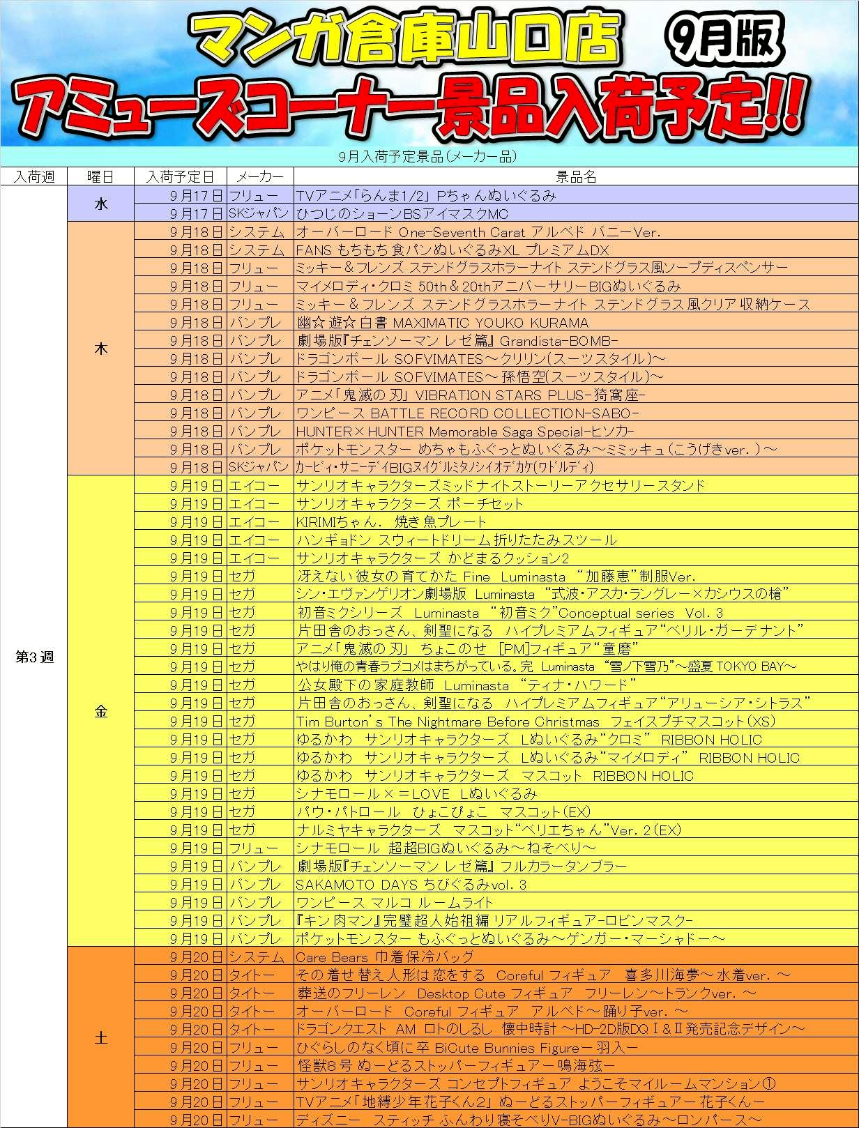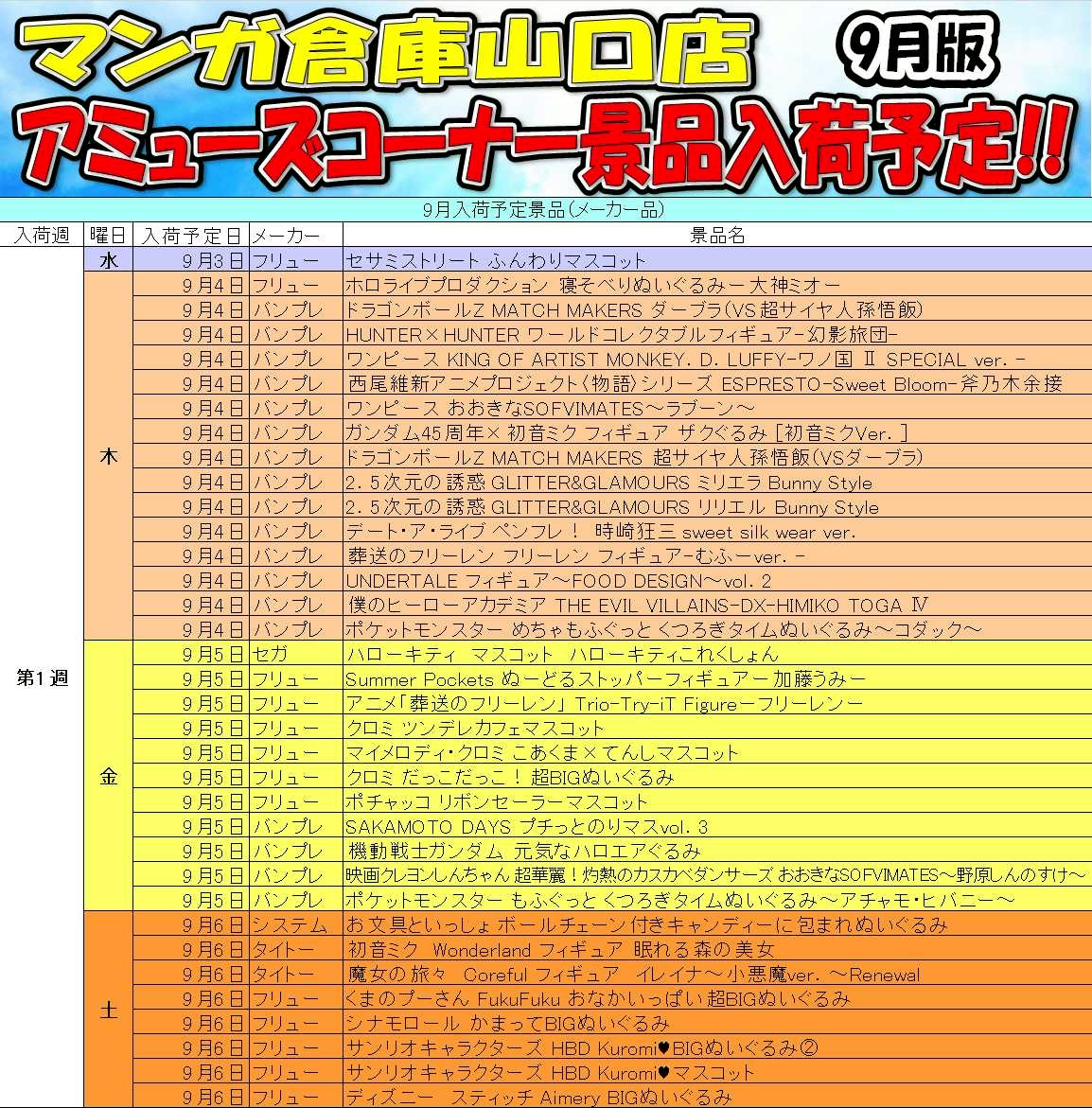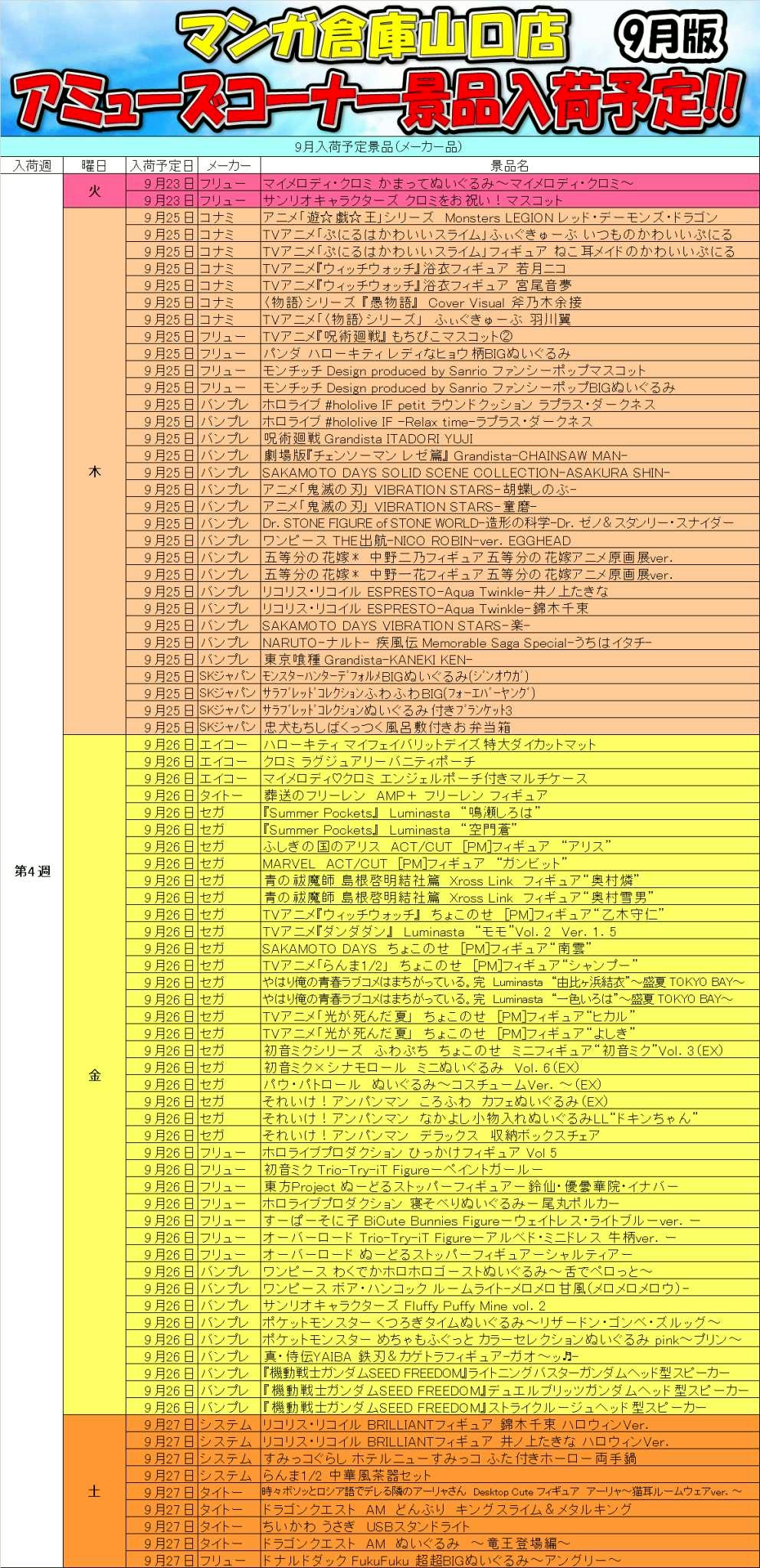 2025.09.01 アミューズ takalab_4 ■9月の入荷予定景品です。■ X.com Facebook はてブ LINE Pocket 1Fアミューズメントコーナーより 9月の入荷予定景品です。 シェア! X.com Facebook はてブ LINE Pocket feedly コメントを残す コメントをキャンセルメールアドレスが公開されることはありません。 ※ が付いている欄は必須項目ですコメント ※ 名前 ※ メール ※ サイト 新しいコメントをメールで通知 新しい投稿をメールで受け取る Δ このサイトはスパムを低減するために Akismet を使っています。コメントデータの処理方法の詳細はこちらをご覧ください。