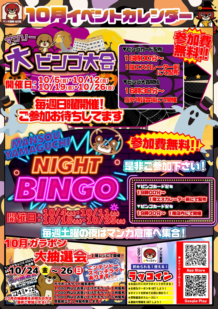 🎃👻マンガ倉庫山口店の10月のイベントです👻🎃