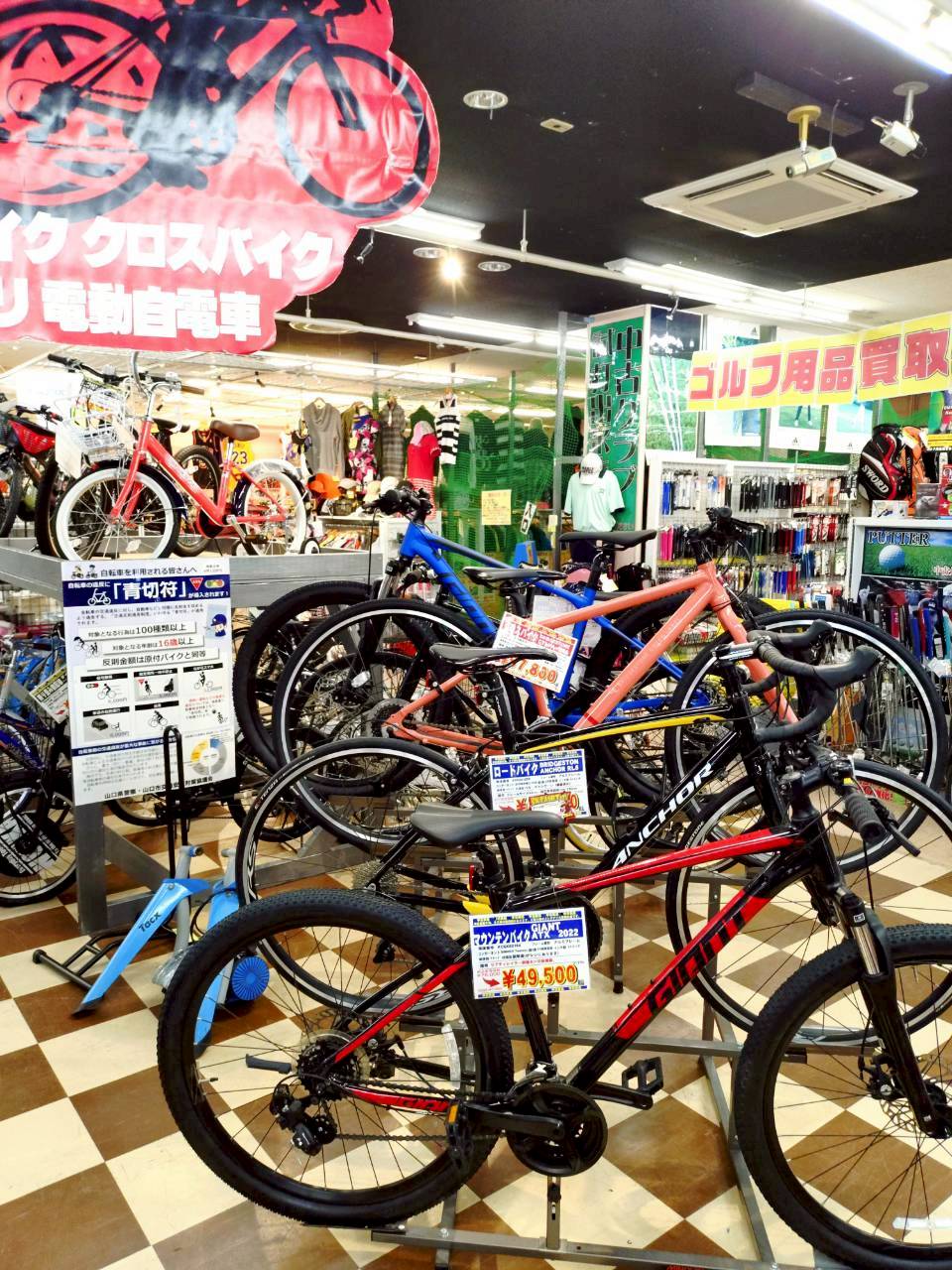 マンガ倉庫山口店ではロードバイクやマウンテンバイク等のスポーツ自転車からシティサイクルや子供用自転車まで各種自転車を取り揃えております!