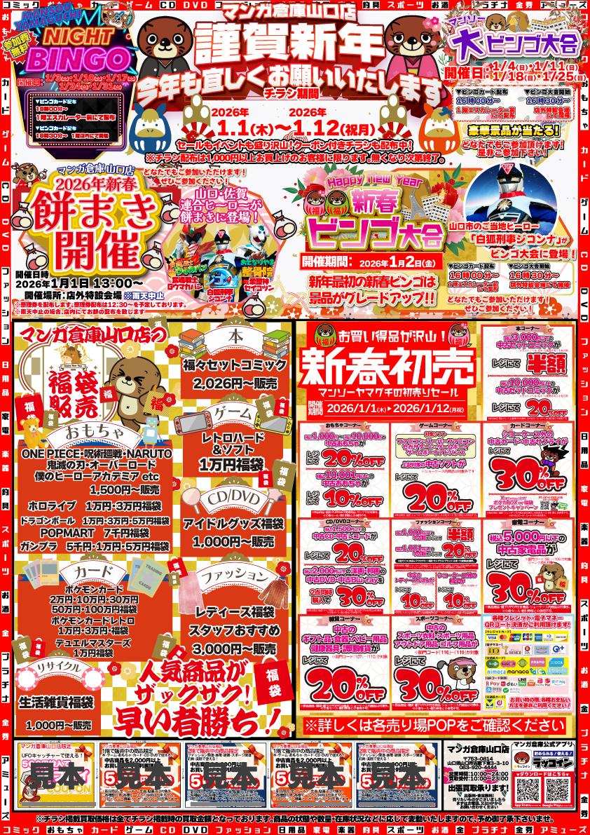 本日公開のチラシをチェックして、是非マンガ倉庫山口店🎍⛩️新春マンソー初売り!初買取り!🎍⛩️にご参加下さいませ💖