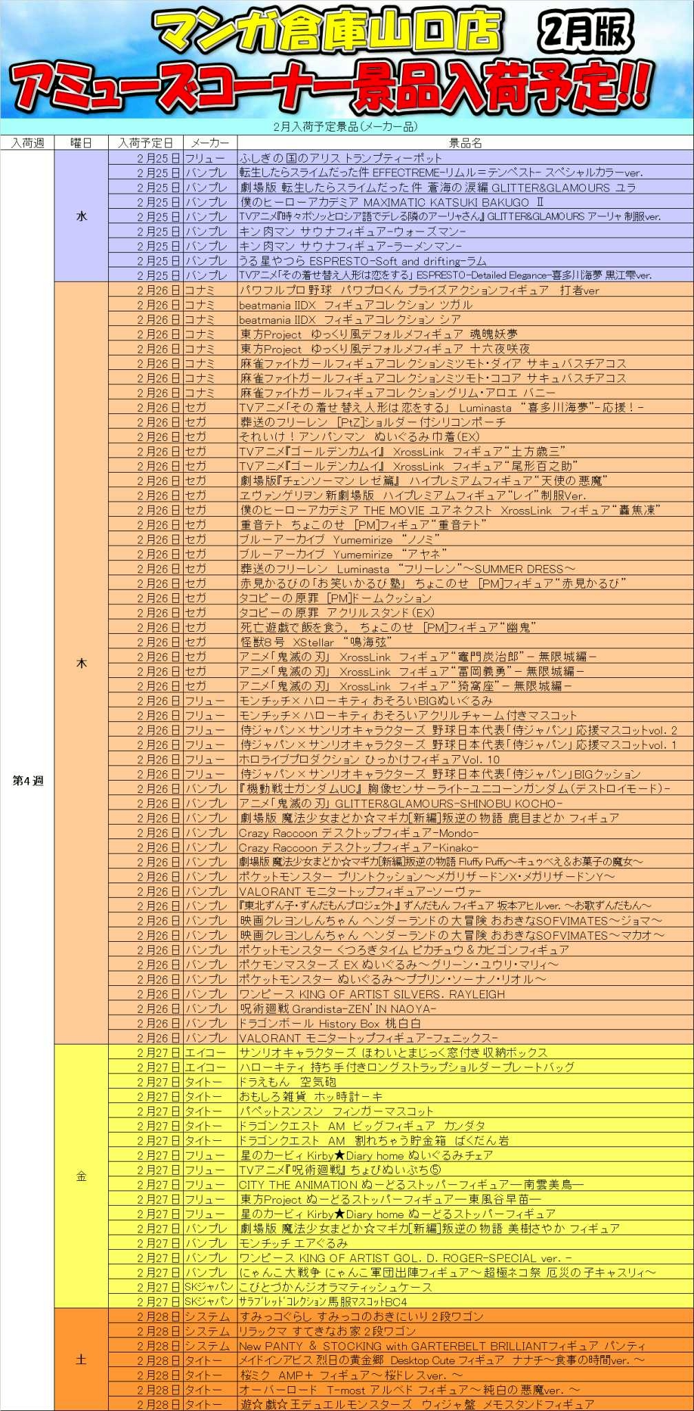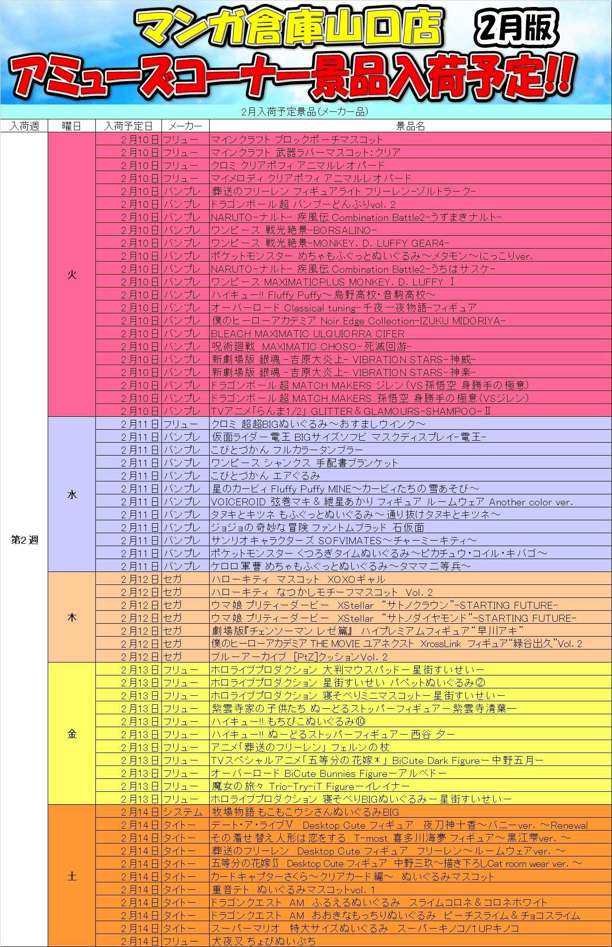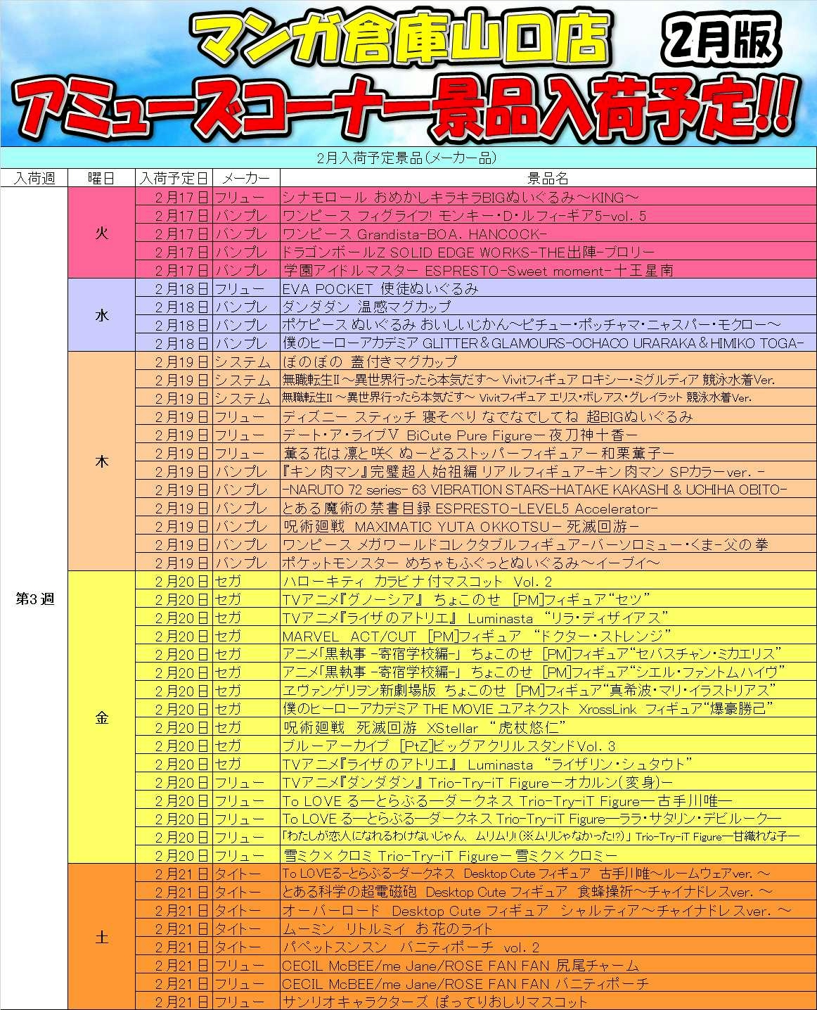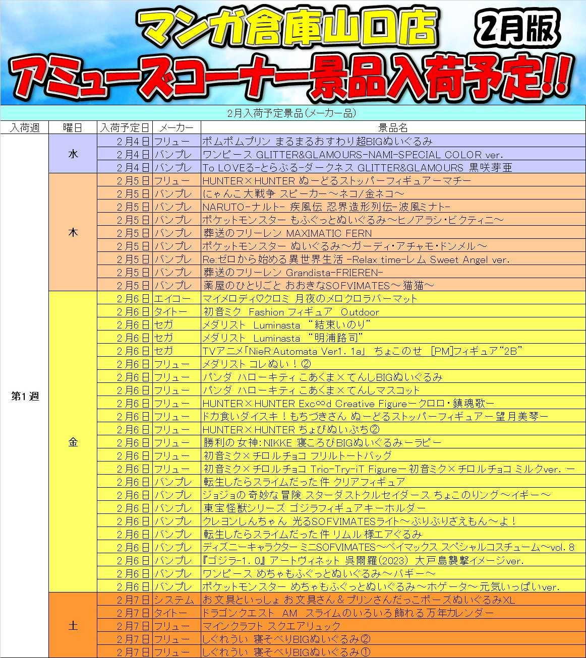 2026.02.02 アミューズ takalab_4 ■アミューズメントコーナーより 2月の入荷予定景品です!■ X.com Facebook はてブ LINE Pocket 1Fアミューズメントコーナーより 2月の入荷予定景品です! シェア! X.com Facebook はてブ LINE Pocket feedly コメントを残す コメントをキャンセルメールアドレスが公開されることはありません。 ※ が付いている欄は必須項目ですコメント ※ 名前 ※ メール ※ サイト 新しいコメントをメールで通知 新しい投稿をメールで受け取る Δ このサイトはスパムを低減するために Akismet を使っています。コメントデータの処理方法の詳細はこちらをご覧ください。