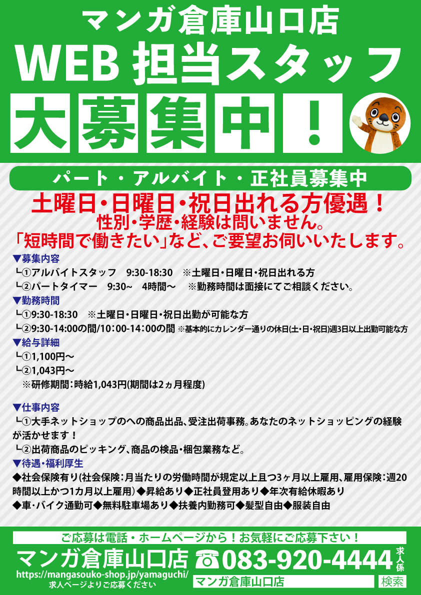 求人【アルバイト・パート募集中】 募集情報 ⭐️ 好きが活かせるお仕事!アルバイト・パート募集中 ⭐️ カード(トレカ)ファッション スニーカー アミューズメント ゲーム おもちゃ 雑貨 スポーツ ゴルフ 自転車 家電 大人向けコーナーなど、興味のある分野で楽しく働きませんか?✨ 📌 未経験OK!スタッフ活躍中♪ 📌 ネットショップ出品・梱包・裏方スタッフも募集中! 興味がある方は、お気軽にお問い合わせください😊 お名前 (必須) お電話番号 ※ハイフン不要(必須) お電話のご都合のよい時間 メールアドレス(必須) ※半角英数字でご入力ください メールアドレス (確認用)※半角英数字でご入力ください 希望職種(必須) 正社員アルバイトパート裏方内職 出勤可能な時間帯 9:30〜13:00〜15:00~18:00〜その他の時間帯(自由記入欄にご記入ください) 勤務ができない曜日勤務ができない曜日(フルタイムは土曜日/日曜日/祝日勤務可能の方) 勤務開始可能時期 興味・自身がある分野にチェック マンガ・書籍・絵本音楽映画・ドラマゲームおもちゃフィギュアホビー(ミリタリー・ミニカー・Nゲージ等)カード(トレカ)釣り楽器家電自転車ゴルフアウトドアスポーツ・サッカー・野球・トレーニングファッションブランド品雑貨アミューズ(UFOキャッチャー・駄菓子)店内什器作成イラスト(手書き)大工経理ネットショップ(出品or梱包)18禁アダルトコーナー 自由記入欄 返信を希望される場合はyamaguchi@mangasouko.comの受信設定をONにしてください Δ