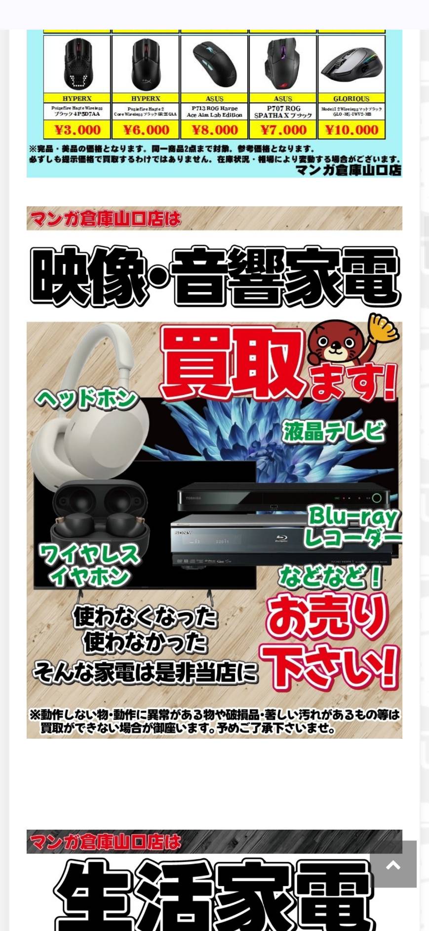 2021.03.03 告知 manager ■白物・黒物家電買取情報■ X.com Facebook はてブ LINE Pocket 2025/4/21 更新 シェア! X.com Facebook はてブ LINE Pocket feedly コメントを残す コメントをキャンセルメールアドレスが公開されることはありません。 ※ が付いている欄は必須項目ですコメント ※ 名前 ※ メール ※ サイト Δ このサイトはスパムを低減するために Akismet を使っています。コメントデータの処理方法の詳細はこちらをご覧ください。