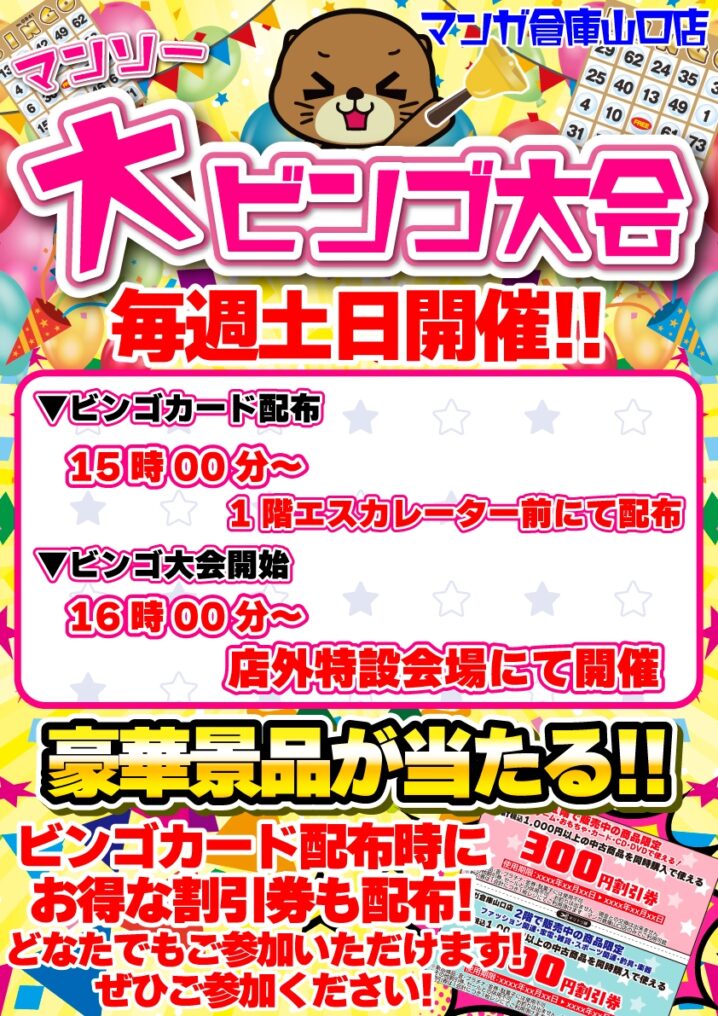 📅開催日 2/7(土)・2/14(土)・2/21(土)・2/28(土) 🕖スケジュール ビンゴカード配布:19:00〜(1階エスカレーター前) ビンゴ大会開始:19:30〜(1階店内)